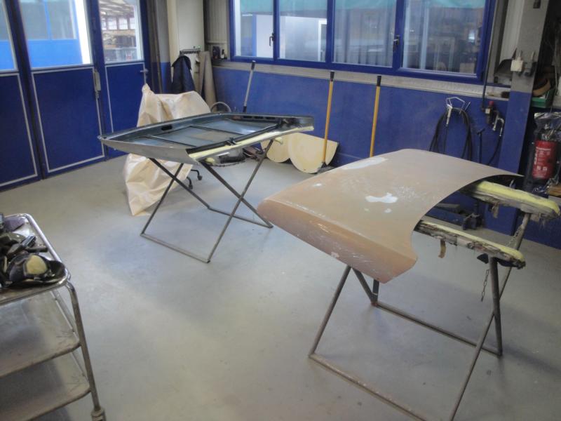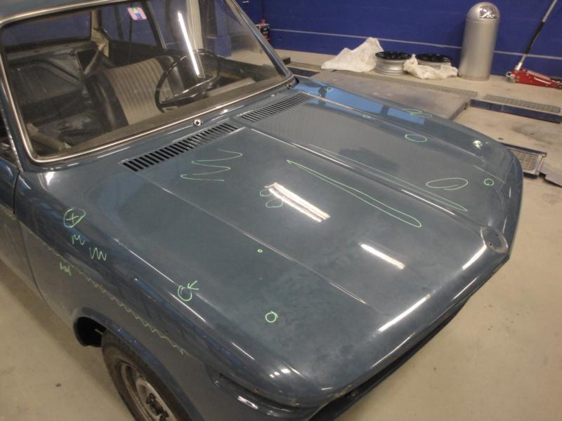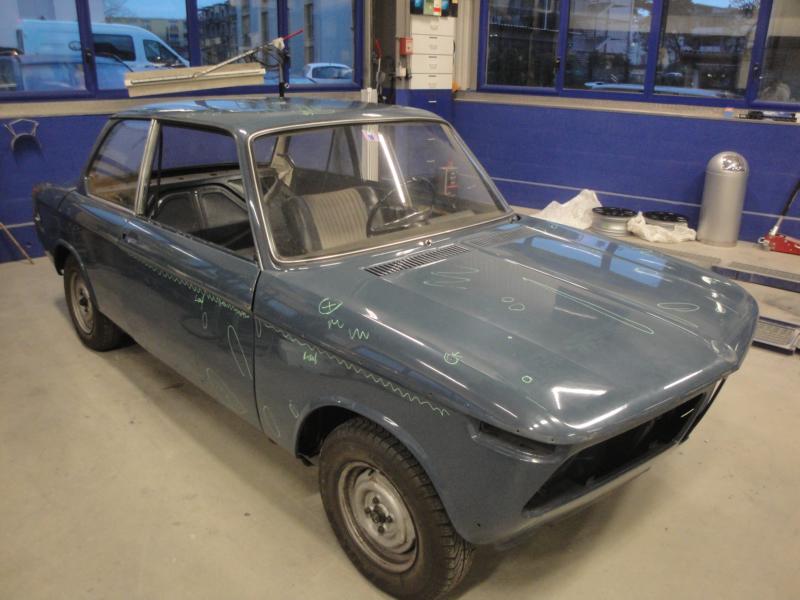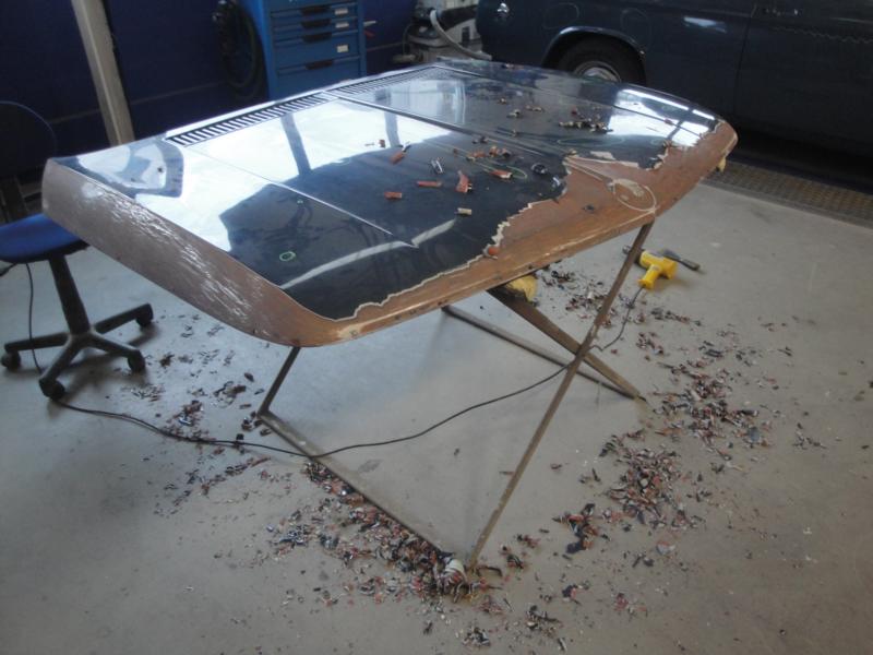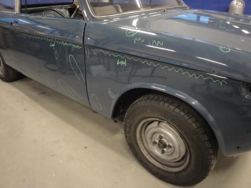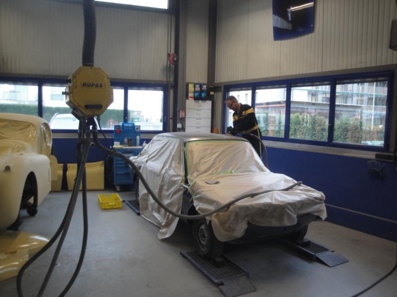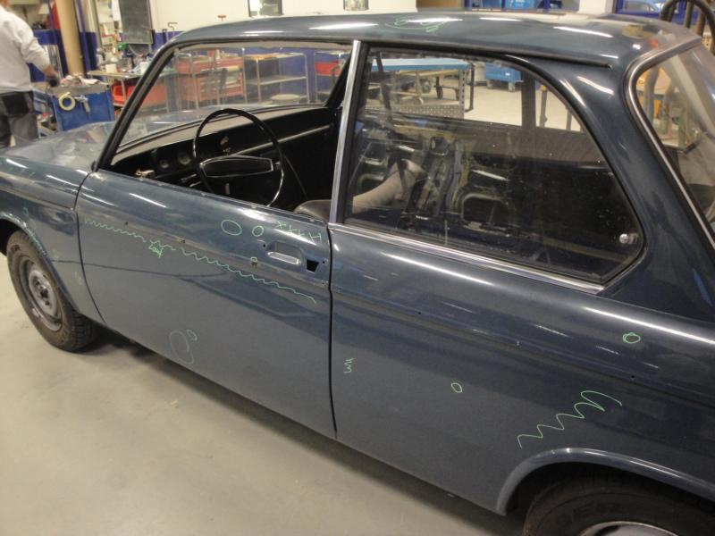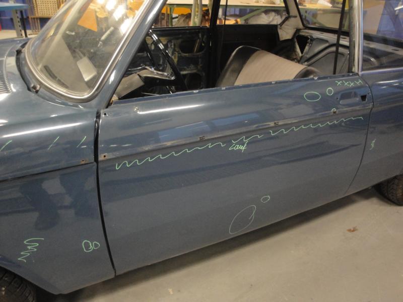 Fahrzeug mit 6V-Bordelektrik. Alles, was es zu Restaurieren gibt, wird markiert. Der Kunde hilft mit, die Farbe muss komplett runter: das gibt warm in der kalten Jahreszeit…
