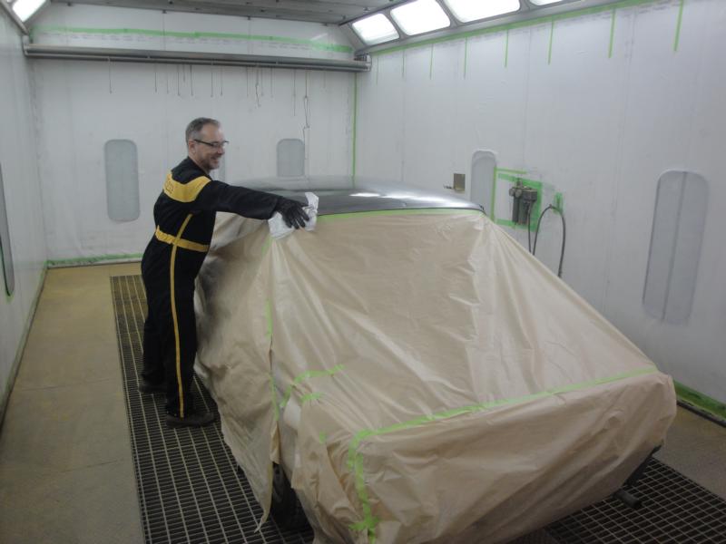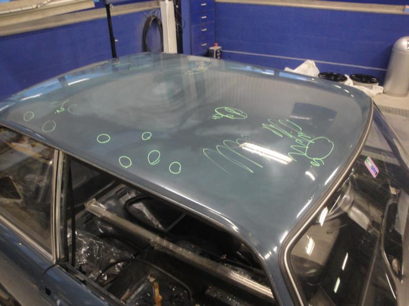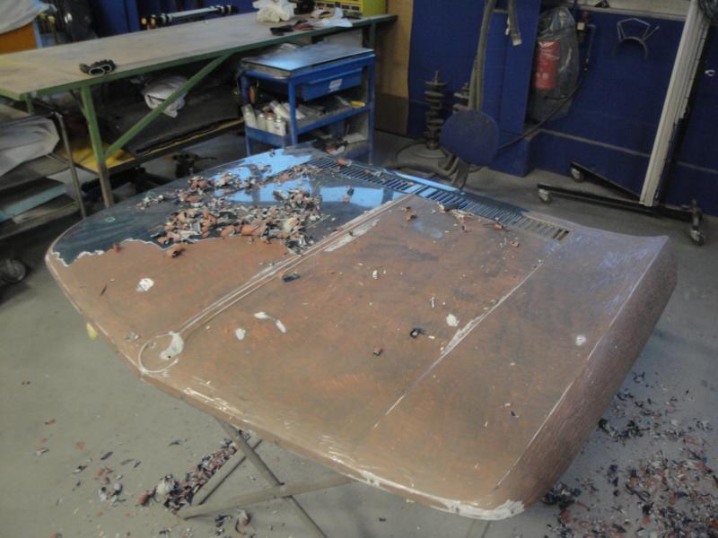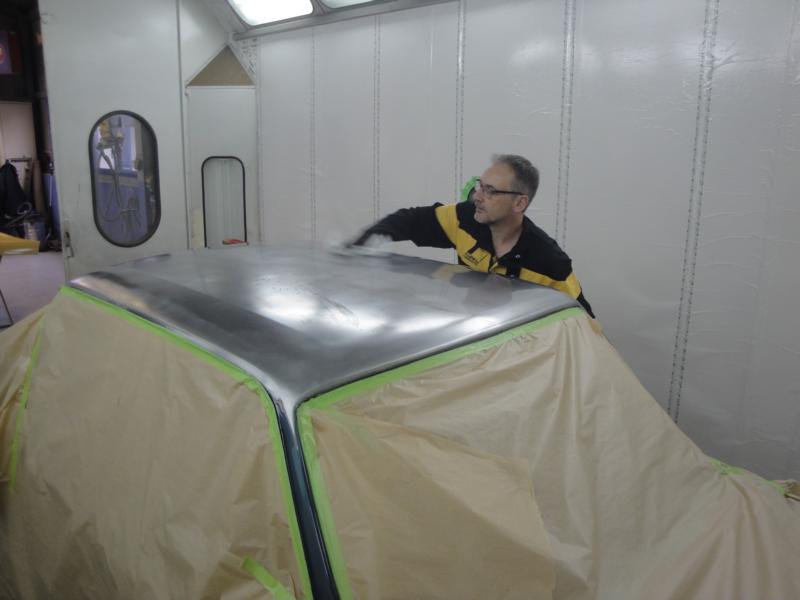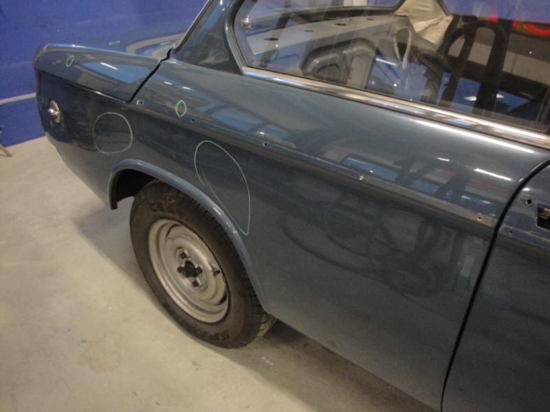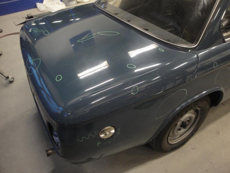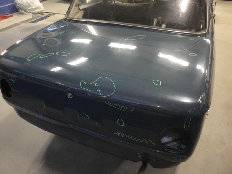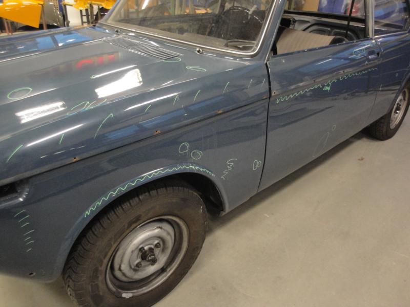 Fahrzeug mit 6V-Bordelektrik. Alles, was es zu Restaurieren gibt, wird markiert. Der Kunde hilft mit, die Farbe muss komplett runter: das gibt warm in der kalten Jahreszeit…